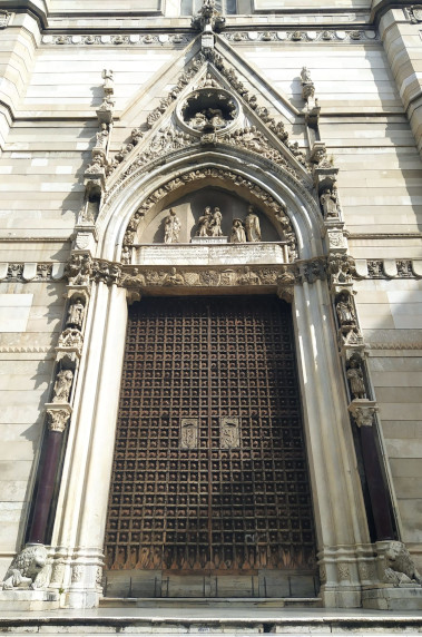 Via Duomo is an historical and cultural symbol of Naples, in the center of which stands the Duomo; a major icon of faith and identity of the city. Today, the main door needs urgent restoration to preserve this masterpiece damaged by time.