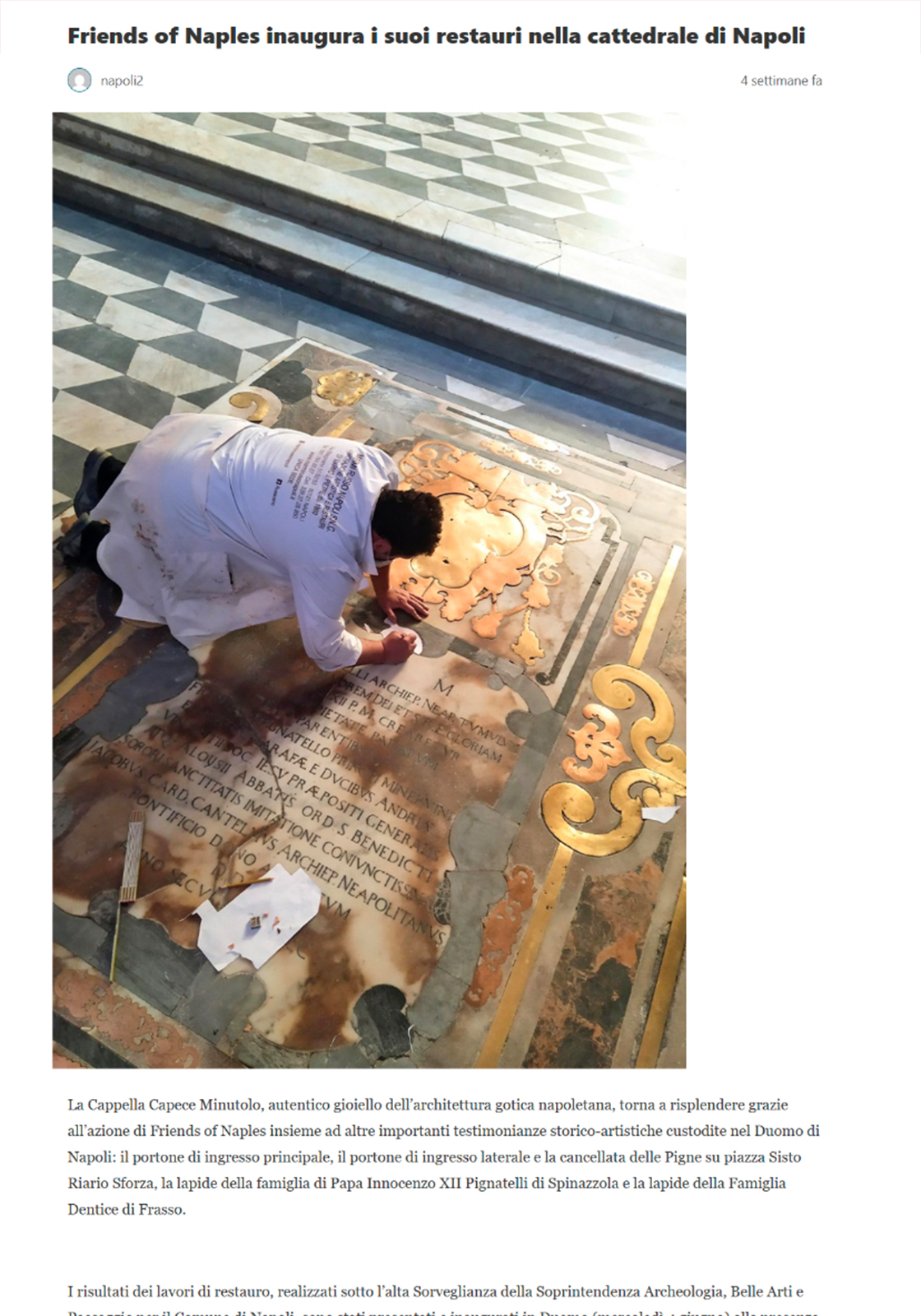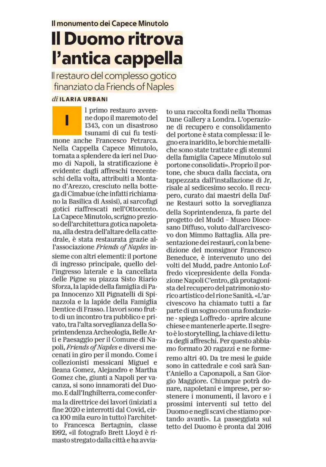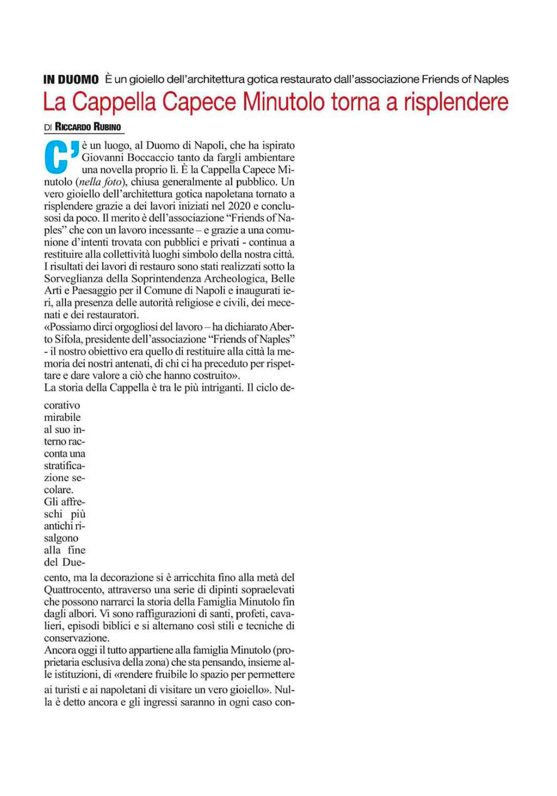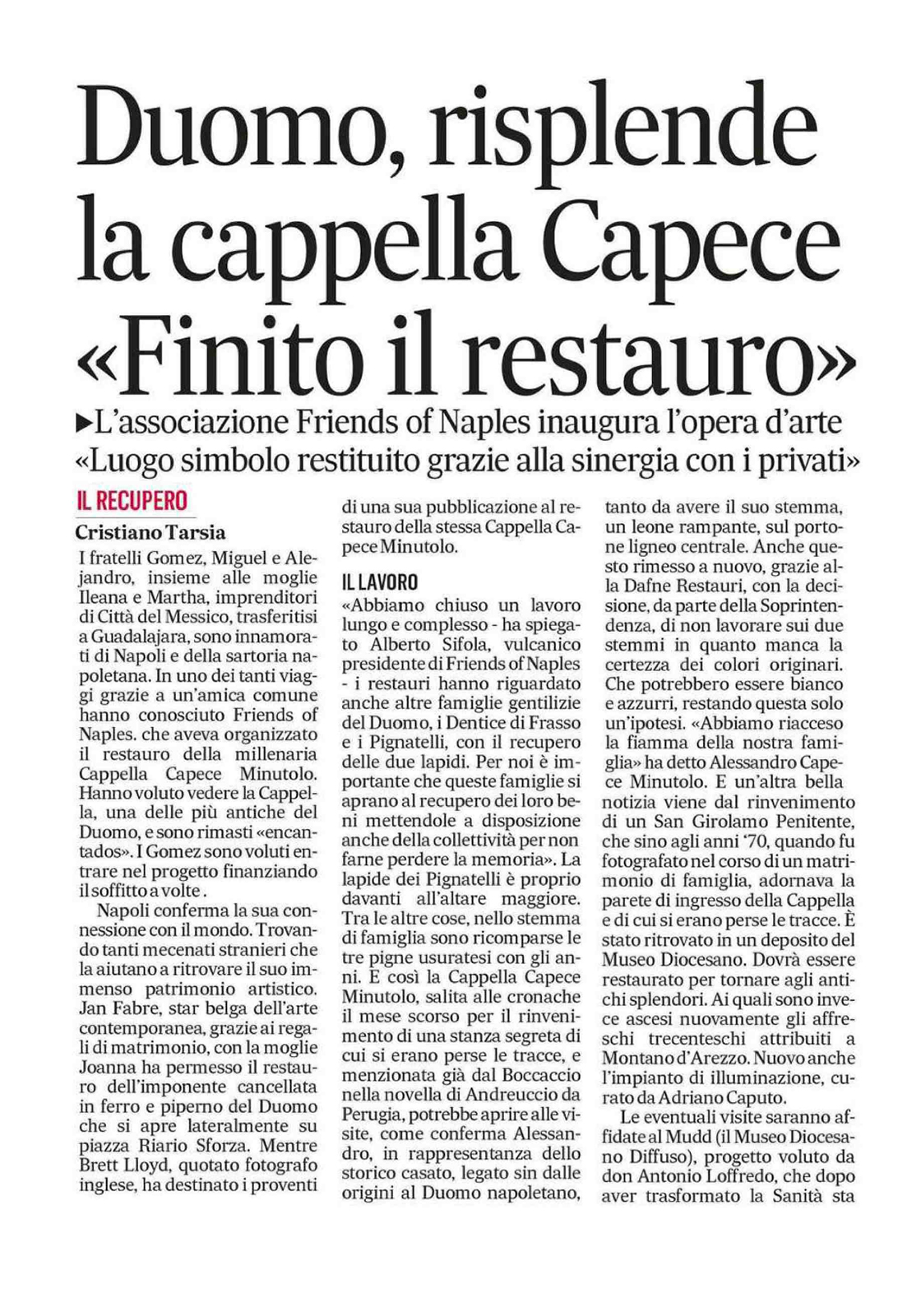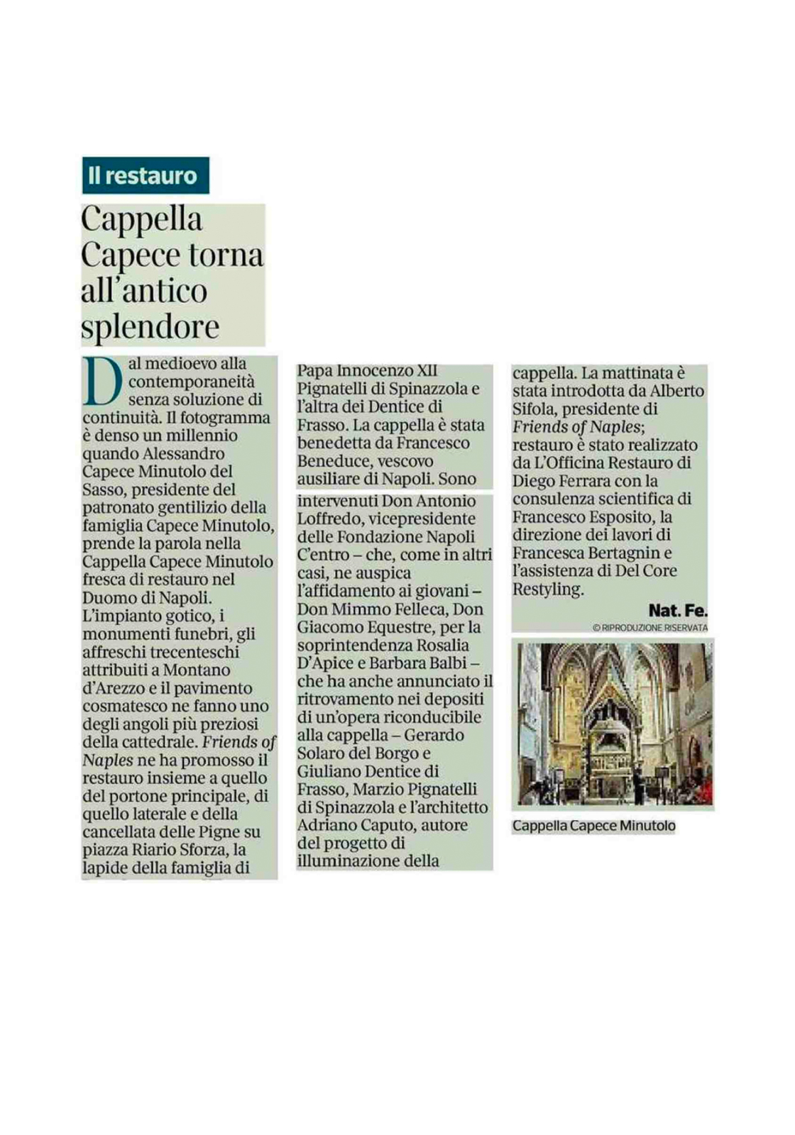 La Cappella Torna a Risplendere